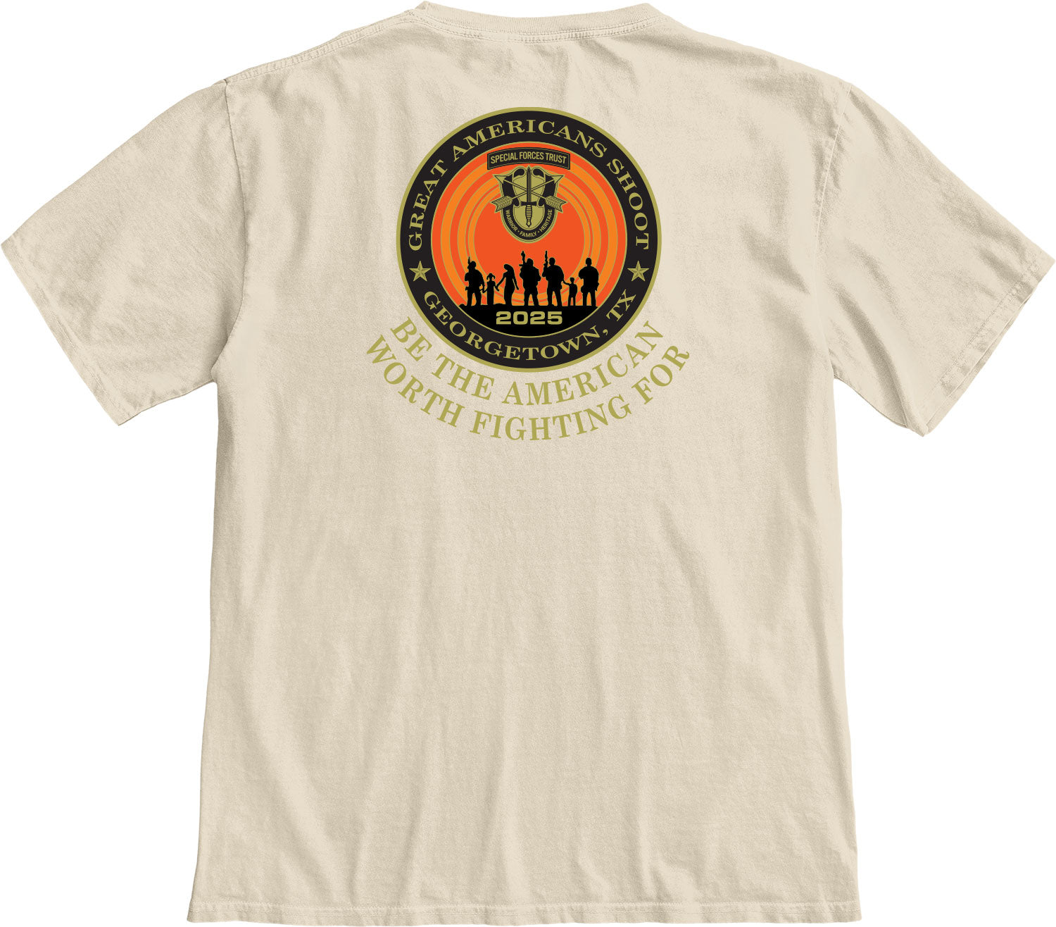 Show your support for The Great Americans Shoot 2025 with this ultra-soft, 100% ringspun cotton tee. Available in two warm, stylish colors—Bonfire and Cappuccino—this comfortable and durable shirt is perfect for casual wear or event day. Featuring a classic fit and premium dyed fabric, it's sure to become your new favorite tee.